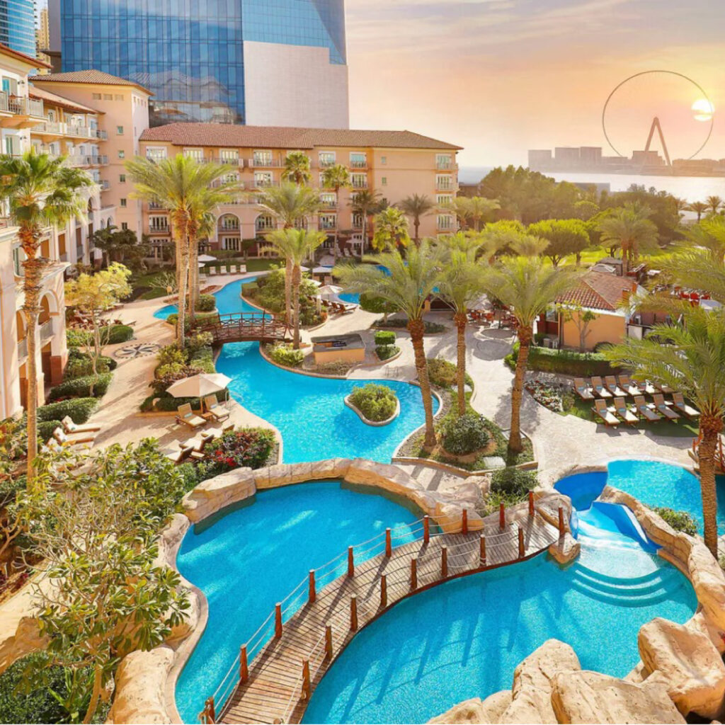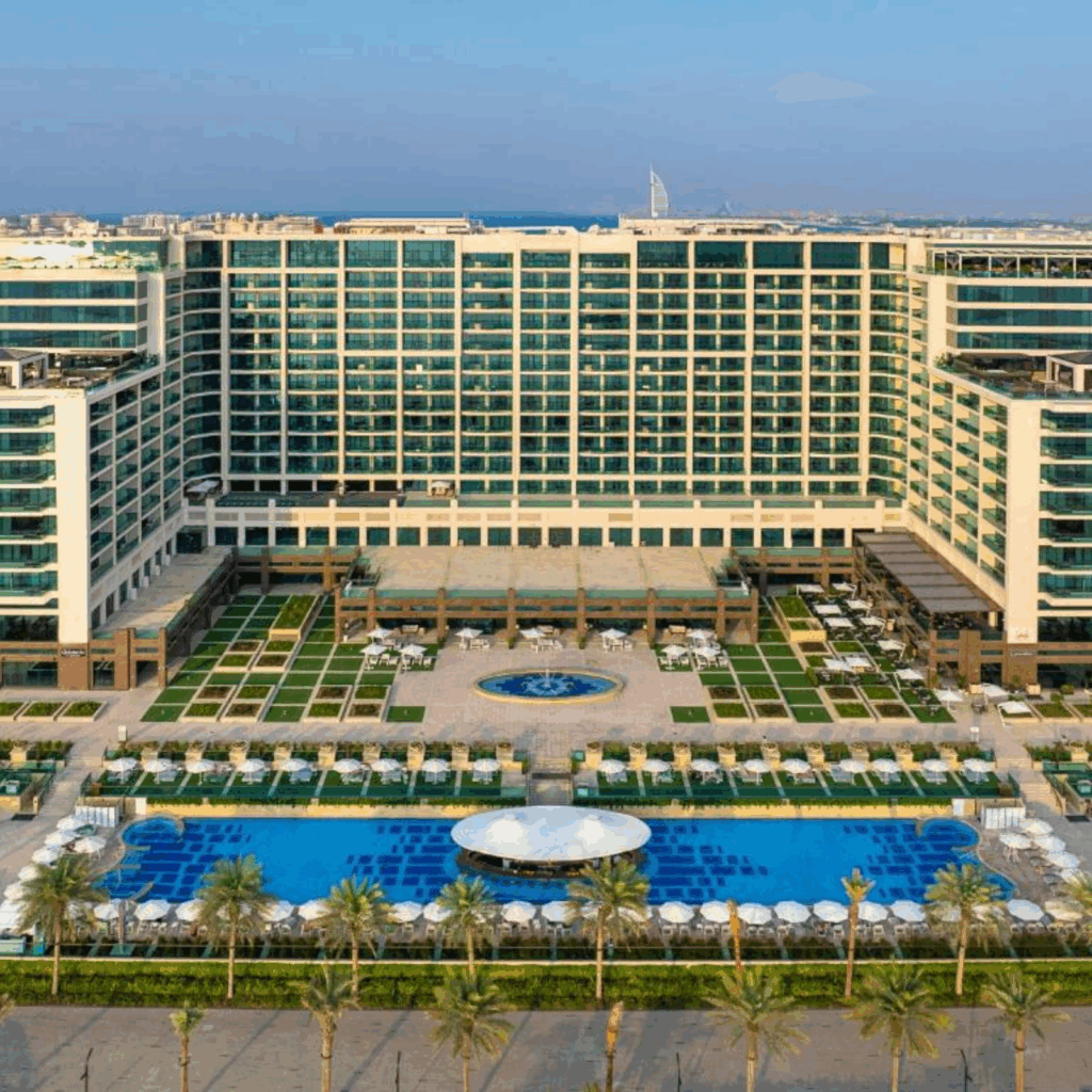 This 5-star Marriott resort in Dubai is located on Palm Jumeirah’s beachfront, offering luxurious rooms, private balconies, and amenities like a beachfront pool, fitness center, and Saray Spa. With 10 restaurants serving global cuisines and a Kids Club, it’s ideal for both leisure and business travelers, providing easy access to Dubai’s attractions.