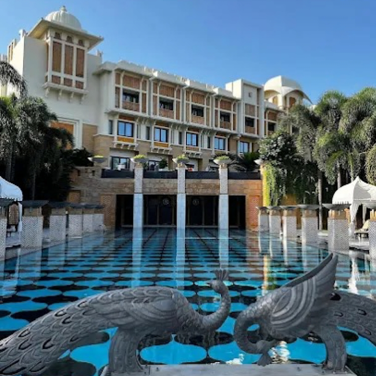 The Oberoi Udaivilas in Udaipur is a 5-star hotel situated on the banks of Lake Pichola, offering stunning views and a tranquil atmosphere. This luxurious resort is spread across 1,21,406 square meters of beautifully landscaped gardens, with intricate domes and corridors that reflect the city’s layout.
